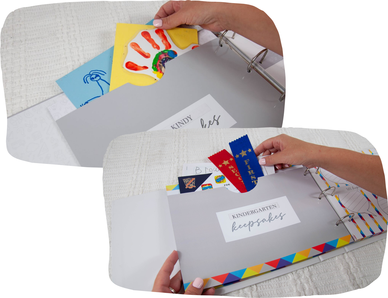 "I used to stash school photos and drawings in random folders and shoeboxes. Now I have one beautiful place to keep everything. Each year has its own pocket, and the prompts make it easy to jot down the important stuff. It even comes with a storage box, so nothing gets lost. Total game-changer for this not-so-organised mum!"